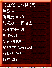 3.【白虎】系 : 移動速度+3、物理技能傷害+???%,戰鬥屬性較微易出力量。