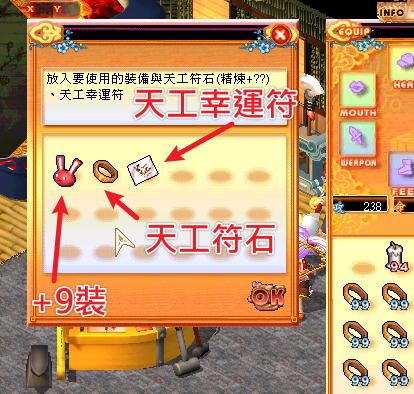 1. 天工符石(精煉+??)可賦予的裝備,限制為+9裝(無精煉次數),方可賦予精煉次數。